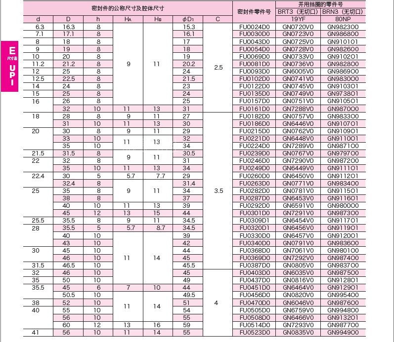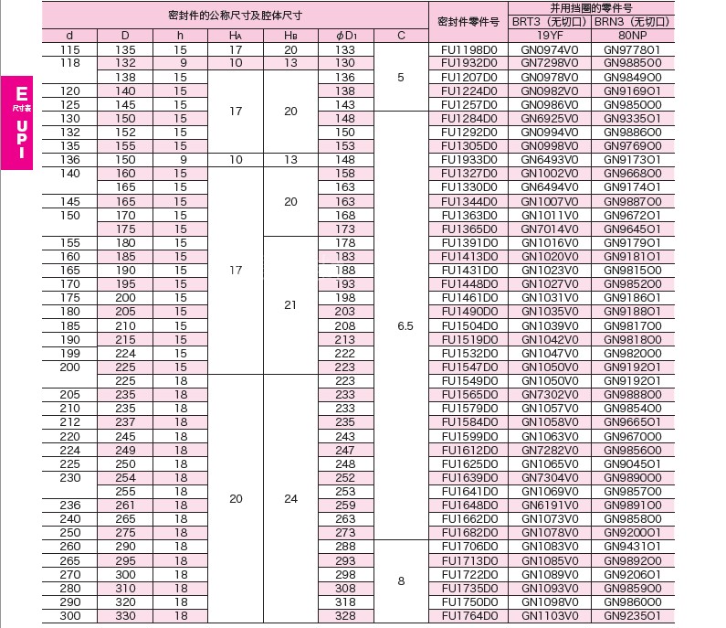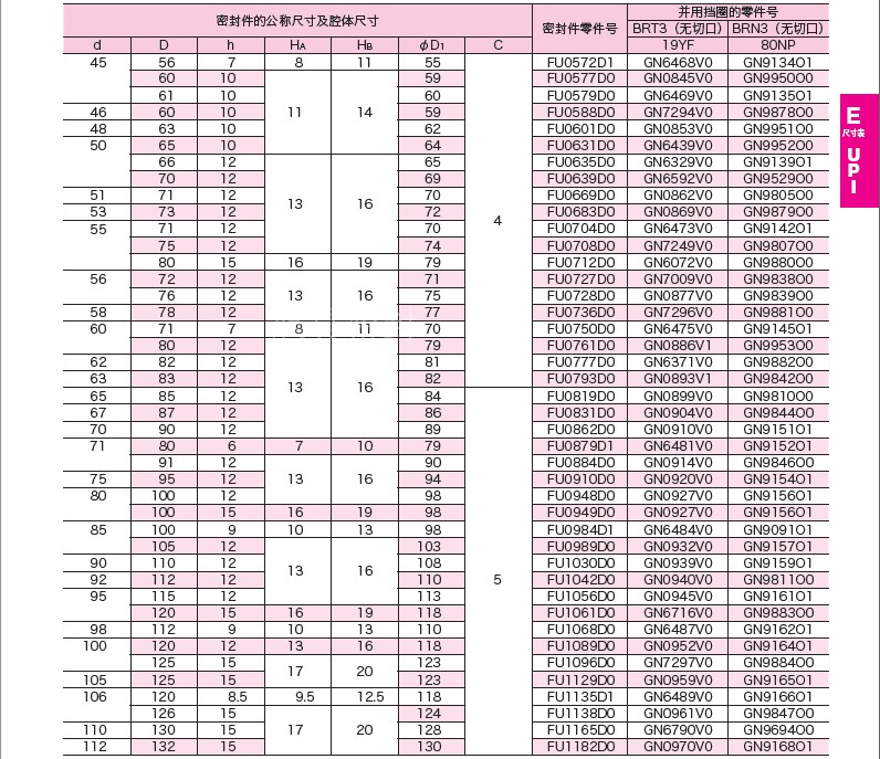 UPI 95*115*12 100*120*12 100*125*15 105*125*15 NOK油封密封圈