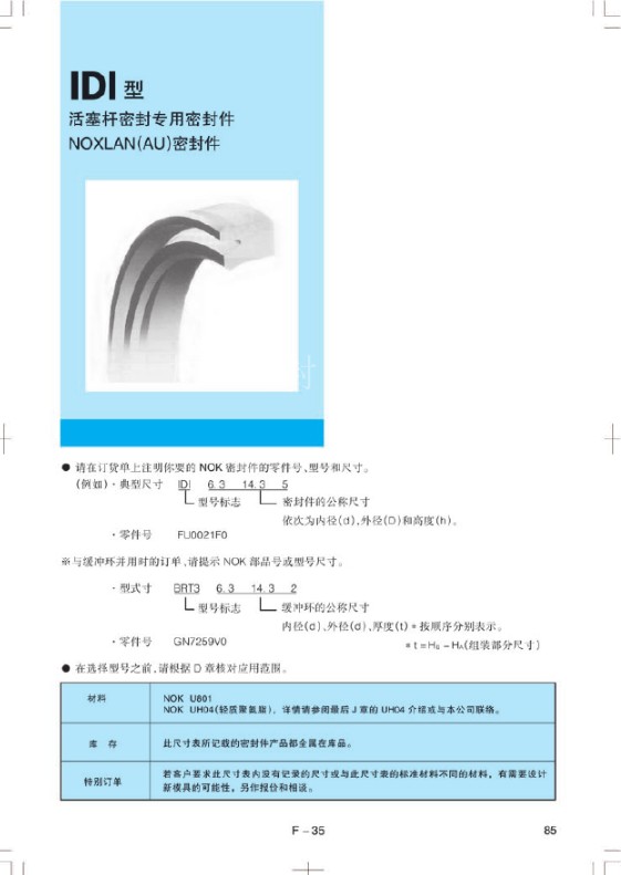 IDI58*70*6.5 95*110*10 125*140*10进口日本NOK油封